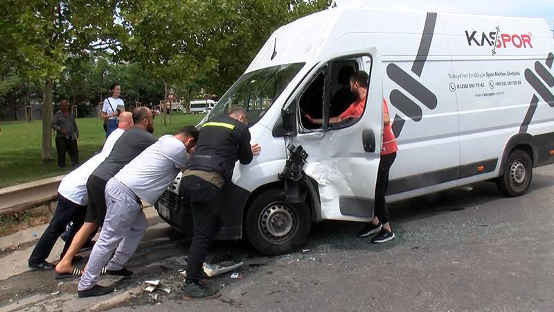 Kartal'da yağışlı hava nedeniyle kayganlaşan yolda hakimiyetini kaybeden motosikletli kayarak devrildi. Sürücüye yardım etmek için duran panelvana arkadan gelen kamyonet ve servis minübüsü çarptı.
