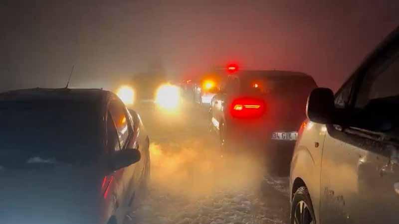 Kartepe Kayak Merkezi yolunda kar ve kazalar nedeniyle uzun araç kuyruğu oluştu