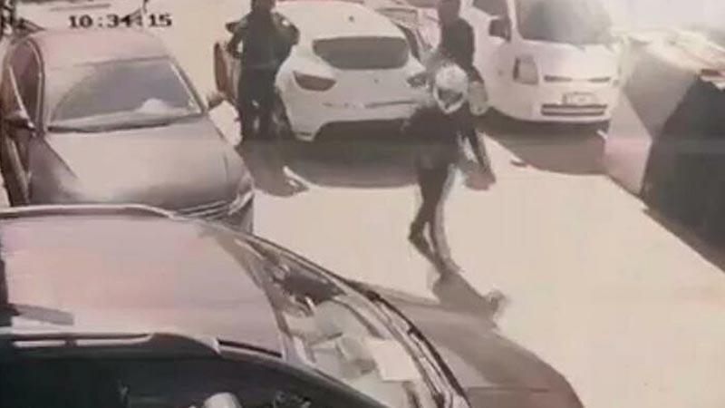 Olay anı güvenlik kamerasına yansıdı. Görüntülerde, şüphelilerin beyaz bir otomobille kafalarında kaskla indikleri ve soygun yaptıktan sonra yine aynı arabayla kafalarında kasklarla kaçtıkları görülüyor.