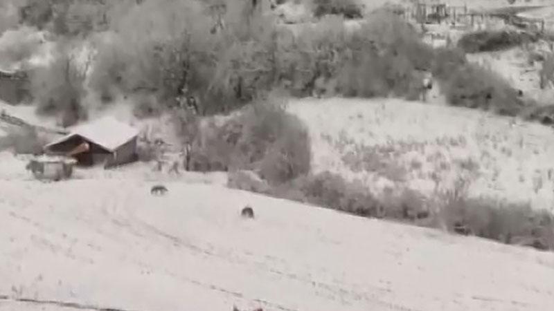 Kastamonu'nun Hanönü ilçesinde gündüz saatlerinde, aç kalan kurtlar köye indi. O anlar cep telefonu kamerasıyla kaydedildi.