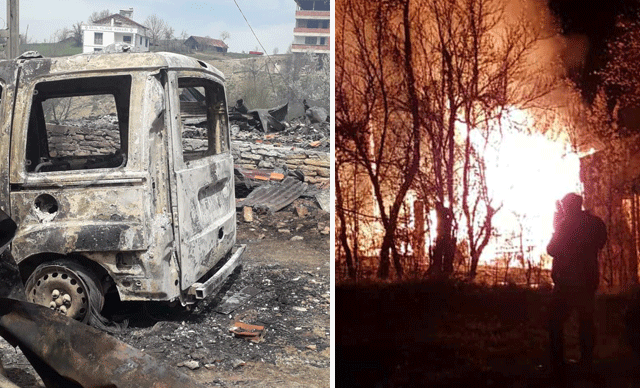 Yangından yaralı kurtulan Mevlüt Yılmaz'ın hastanedeki tedavisinin sürdüğü öğrenildi. Savcı ve jandarma ile olay yeri inceleme ekipleri, enkazda inceleme yaparken, soruşturma sürdürülüyor.