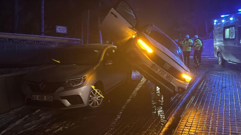 Kütahya’da buzlanma nedeniyle kontrolden çıkan otomobil, kayarak park halindeki bir aracın üzerine çıktı. Kazada 2 kişi hafif şekilde yaralandı.