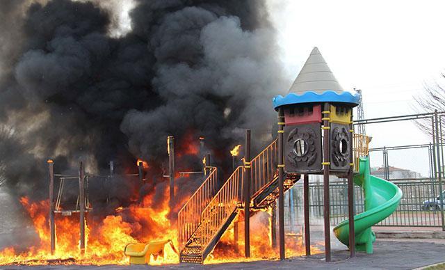Yangın, dün sabah saatlerinde Argıncık Kayabaşı Mahallesi'ndeki Doğu Sanayi Parkı alanındaki çocuk parkında meydana geldi. Parktaki oyun aletleri bir anda alevlerin arasında kaldı. Yangını görenler, itfaiyeye haber verdi. Gelen itfaiye ekipleri, yangına müdahale ederek kısa sürede söndürdü. Yangın sırasında parkta kimsenin bulunmadığı belirtildi.