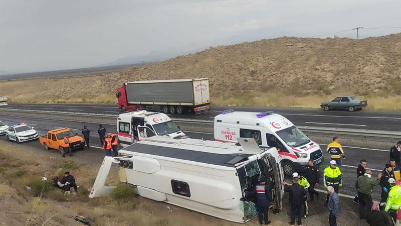 Kayseri-Niğde kara yolunda midibüsün devrildiği kazada 14 yolcu, yaralandı.