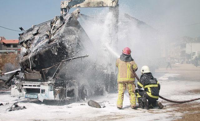 Kazanın ardından Eşref Dinçer Mahallesi’ndeki otoparka çekilen TIR’da patlama meydana geldi. Dorseden alevler yükselirken, TIR’ı çeken çekicinin şoförü Mustafa Çalışkan patlamadan son anda kurtuldu.
