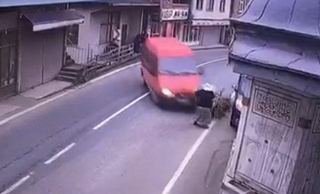 Rize'de sürücüsünün kontrolünden çıkan minibüs, yolda el arabasıyla ot taşıyan Meryem Kayalar'a (50) çarptı. Minibüs ile caminin şadırvanı arasına sıkışan Kayalar ahayatını kaybetti. Kaza anı ise güvenlik kamerasına yansıdı.