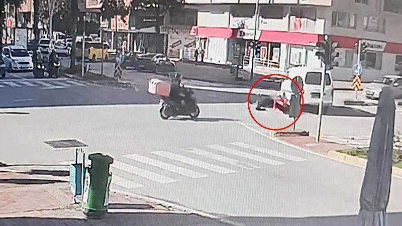 Bu arada kaza, yakındaki bir güvenlik kamerasına yansıdı. Görüntüde motosiklet ile minibüsün kavşakta çarpışması, devrilen motosiklet sürücüsünün yardımına çevredekilerin koştuğu anlar yer aldı.