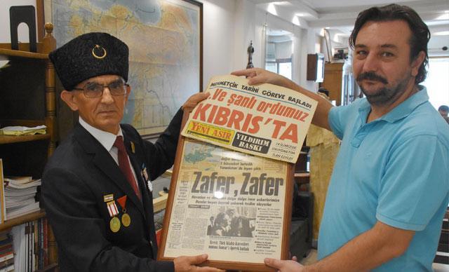 Koleksiyonu gezen Kıbrıs Gazisi Şükrü Karaca, harekat anılarını da anlattı. Karaca, "Kıbrıs'taki Türkleri soykırıma tabi tutmak istediler. Bu yüzden Türk askeri denizden ve havadan müdahalede bulunmak zorunda kaldı. Rahmetli Dışişleri Bakanı Turan Güneş, dinlemeleri dikkate alarak 'Ayşe tatile çıksın' diyerek operasyonu başlattı. 15 Temmuz 1974 yılında Trabzon 11. Kolordu'da görevliydim. 33 asker ile Kıbrıs'a doğru yola çıktık. Mersin'e varıncaya kadar karşılaştığımız insanlar 'Bizi de Kıbrıs'a götürün' diyorlardı. Mersin'den gemilere bindik ve yola çıktık. Kıbrıs'a yaklaşık 10 mil kala bizi hem havadan hem de karadan vurmaya başladılar. Gemimizin iki tarafına yanaşan çıkarma gemisine askerler ve cephaneler aktarıldı. Ardından da çıkarma yaptık. Geminin kapıları açınca içeri sular doldu ve biz de atladık. Gırtlağımıza kadar denizin içindeydik ancak çabucak çıkmamız gerekiyordu. 100- 150 metre kadar yüzdükten sonra karaya vardık. Yunanlılar çok büyük hazırlık yapmışlardı ancak bizim denizden ve havadan çıkarma yapacağımızı hesap edememişlerdi" dedi.
