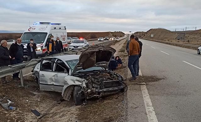 Kırıkkale'de, sürücüsünün kontrolünden çıkan otomobilin refüjdeki su kanalına girdiği kazada 1'i çocuk 6 kişi yaralandı.