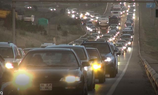 Kırıkkale'deki 43 ilin geçiş güzergahında bulunan ve 'kilit kavşak' olarak isimlendirilen yolda, kilometrelerce uzunlukta araç kuyruğu oluştu.