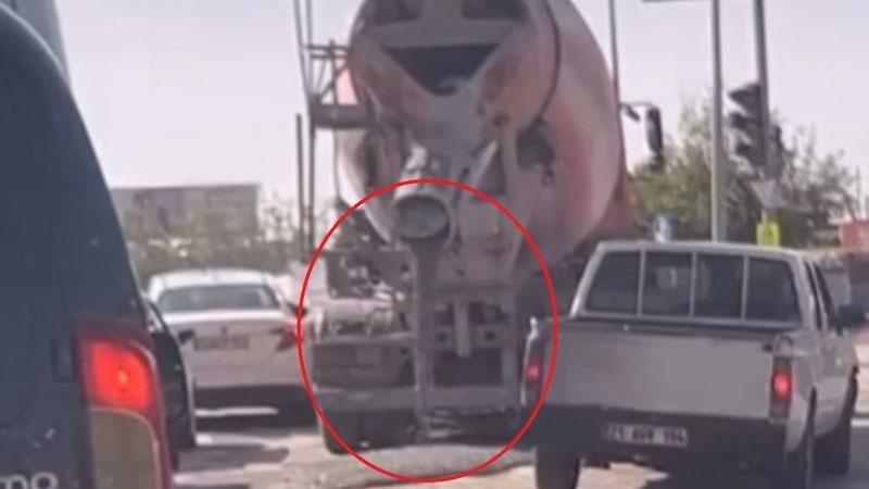 Diyarbakır'da trafik ışıklarında duran beton mikserinden yola dökülen harç, trafiği tehlikeye düşürdü. O anlar, cep telefonu kamerasıyla görüntülendi.