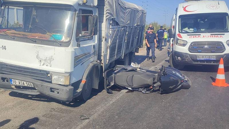 Bursa’nın Karacabey ilçesinde kırmızı ışıkta bekleyen motosiklete arkadan gelen kamyon çarptı. Kazada motosiklet sürücüsü Mehmet Ata (44) hayatını kaybederken, oğlu yaralandı.