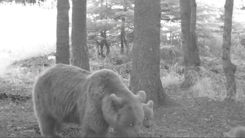 Kış uykusuna yatmayan anne bozayı, 3 yavrusuyla fotokapana yansıdı