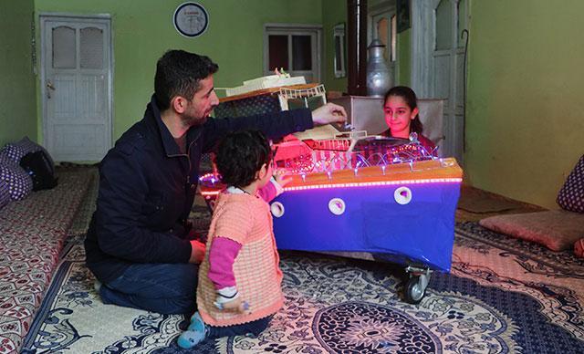 Hakkari'nin Yüksekova ilçesinde, daha önce 15 Temmuz Şehitler Köprüsü'nü görmek isteyen kızı için köprünün maketini yapan Aydın Güder (32), şimdi de kızı için kullanılmayan elbise dolabından tekne yaptı.