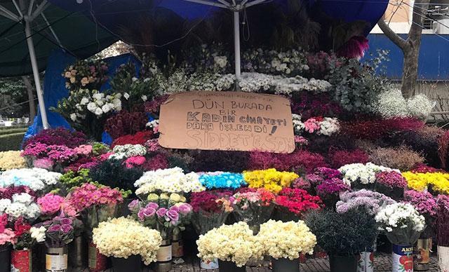 Kadıköy'de cezaevinden çıkan eşi Tahsin Yüksekova tarafından kayınvalidesi Zülfiye Yüksekova ile birlikte öldürülen Seyhan Yüksekova'nın sahipsiz kalan çiçekçi tezgahı, Kadın Cinayetlerini Durduracağız Platformu üyeleri tarafından ziyaret edildi.