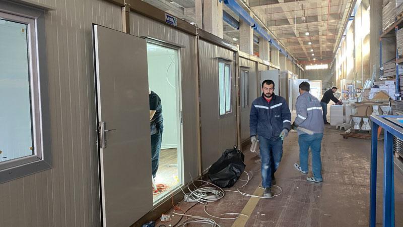 Konteyner ve prefabrik yapı firması yöneticisi Hakan Durmaz, ihracat yasağından sonra yalnızca deprem bölgesi için çalıştıklarını belirterek, "Daha önce üretimimizin yüzde 50'si yurt dışına gidiyordu. Önceden günlük üretimimiz 20 konteynerdi, bu sayıyı 50'ye çıkardık. AFAD ve Kızılay tarafından bölgenin en çok ihtiyacı olan, bir ailenin yaşayabileceği iki oda, tuvalet, mutfak, içeren bir konteyner tipi belirlendi, örnek gösterildi. Biz de sadece onu üretiyoruz. Buradaki ürünlerin hemen hemen tamamı bağışlarla hazırlandı. Yardım kuruluşları, dernekler, kamu kurum ve kuruluşları ile özel sektörden yardım etmek isteyenler bizlere müracaat ediyor. Bu ürünün de fiyatı 95 bin TL artı KDV'dir. Devletimiz, KDV indirimi gerçekleştirdi. İnşallah, üretimi artıracağız. Personellerimiz yetişemiyordu, ilave iş gücü bulduk. Çünkü, sektörde bu kadar işçi de yoktu. Yeni işçiler aldık, eğitimler verdik ve gece vardiyası da başlattık. Bu konteynerler dört mevsim kullanılabilir ve stoklanabilir. Van Depremi'nde kullanılan 15 bin adet konteyneri AFAD stoklamıştı, bir sonraki deprem bölgelerinde de kullanıldığını biliyoruz" dedi.