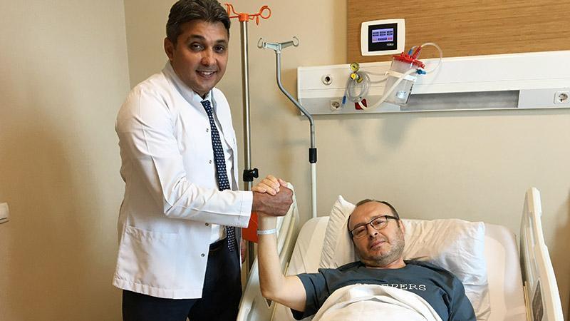 Denizli'de özel sektörde idareci olarak çalıştığını aktaran Faruk Bostan, 23 yıldır kalp hastası olduğunu kaydederek, "Hem kalp ritmim bozuk hem da kalp pilim var. Bu nedenle genel anestezi riskli olacaktı. Sağ olsun Tuğrul hocamıza ulaştık ve ameliyatımı spinal anestezi ile gerçekleştirdi. Uyanık olduğum ameliyat boyunca Doç. Dr. Tuğrul Çakır ile sohbet ettik. Ameliyatı başından sonuna hatırlıyorum. Ameliyat sırasında hocam hep bilgiler verdi. Ne yaptığını anlattı, ben dinledim" dedi.