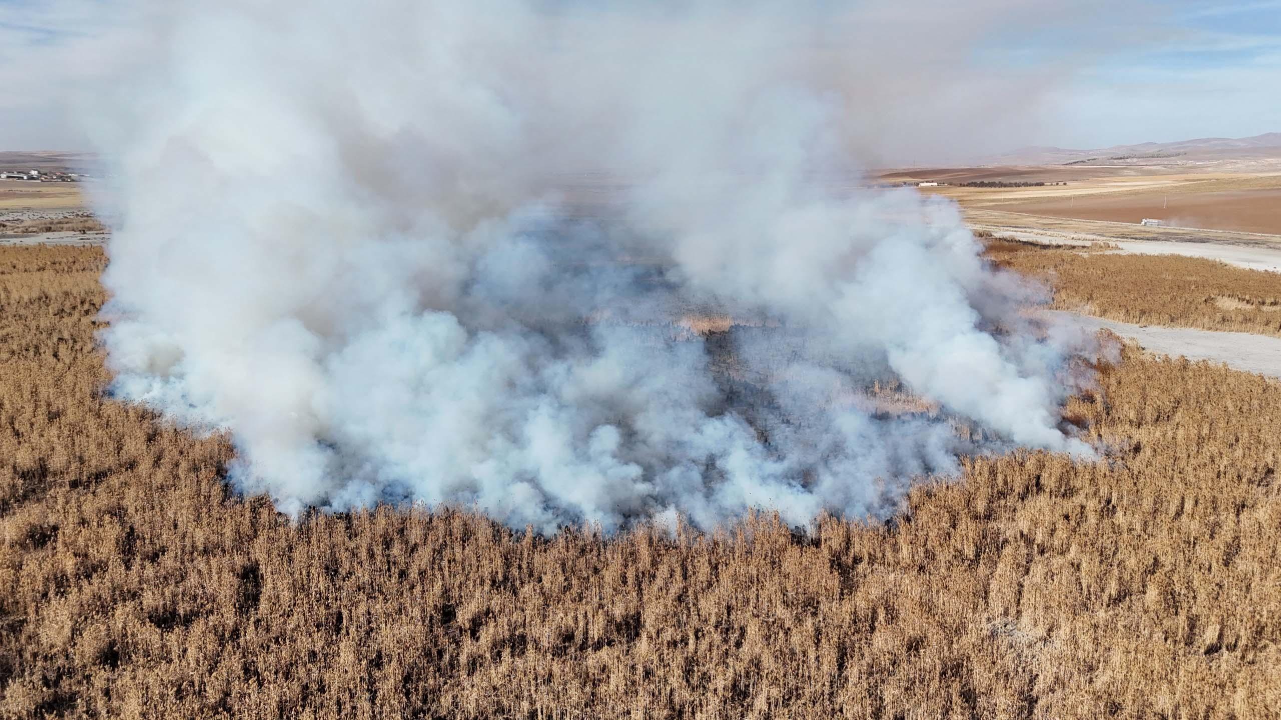 Konya Gök Gölü'ndeki sazlık bölgedeki yangın 2'nci gününde devam ediyor