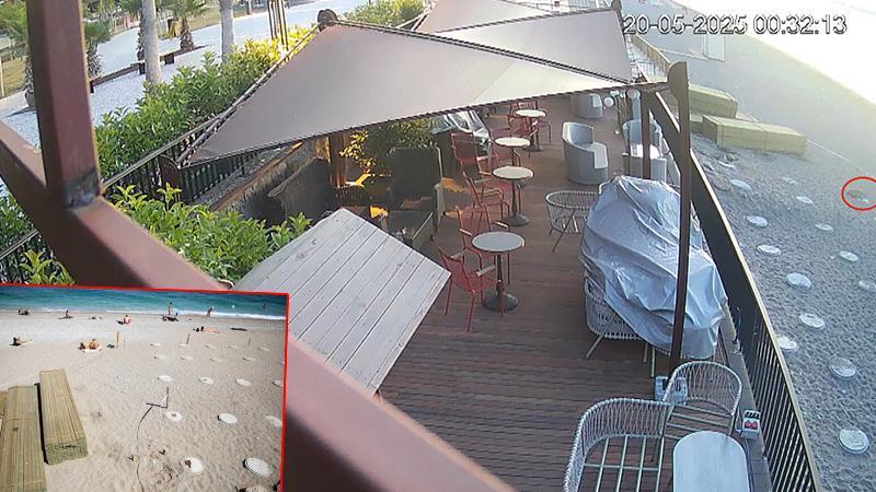 Sahildeki bir işletmenin çalışanı Fatih Ardil, sabah saatlerinde iş yerine geldiğinde kumluk alanda 4 çukur fark etti. Çukurları inceleyen Ardil, yumurtalar olduğunu gördü. Bunun üzerine güvenlik kamerası görüntüsünü inceleyen çalışanlar, çukurların bir deniz kaplumbağası tarafından açıldığını anladı. Nesli tehlike altındaki türün yumurtaları olduğunu fark eden çalışanlar, tahta parçalarına şeritler çekerek, yuvaları koruma altına aldı.