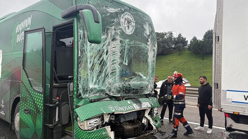 Kaza, saat 15.09 sıralarında TEM Otoyolu Akşemsettin Mahallesi'nde meydana geldi. Edinilen bilgiye göre; Konyaspor U-19 futbol takımını taşıyan kulüp otobüsü Samandıra Kavşağı'nda kamyona arkadan çarptı. İhbar üzerine olay yerine sağlık, polis ve itfaiye ekibi sevk edildi. İtfaiye ekipleri otobüste sıkışan şoförü kurtarmak için çalışma başlattı. Otobüs şoförü ve 2 futbolcunun yaralandığı kazada TEM Otoyolu'nun 2 şeridi trafiğe kapatıldı. Ekiplerin çalışması sürüyor.