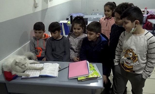 Bahçelievler İstasyon Mahallesi'ndeki dershaneye giden öğrenciler, sokakta köpeklerin saldırdığı yaralı kediyi buldu. Öğrencilerden Canan Kaya, kediyi kucaklayarak dershane binasına götürdü. Öğrencilerin sahip çıktığı kediyi dershane müdürü Yusuf Çağlayan, veterinere götürerek tedavi ettirdi. Yaraları sarılan kedi için dershanede yuva oluşturuldu. Küçük odaya konulan kediye öğrenciler, yiyecek verdi. Odasında mama yiyip, su içen kedi de öğrencilerin sevgisine, yanlarında dolaşarak karşılık verdi.