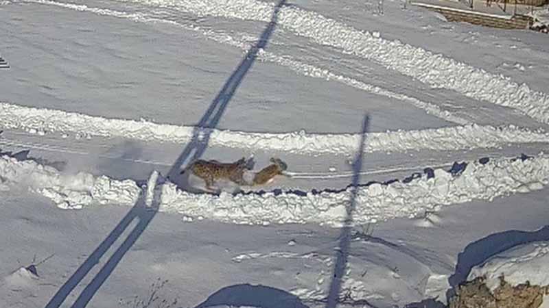 Etkili olan kar yağışı sonrası yiyecek bulmakta zorlanan, ormanın hayaleti olarak bilinen vaşak, İmranlı'ye bağlı Kılıçköy'e indi. Köyün etrafında gezen vaşak, karla kaplı alanda gördüğü tavşanı peşine düşüp, yakaladı. Vaşağın tavşanı avladığı anlar, güvenlik kamerasına yansıdı.
