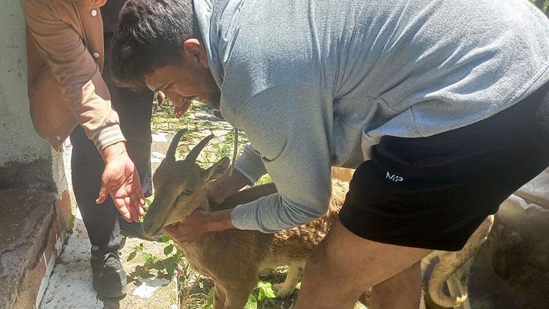 Köye inen yavru dağ keçisini yakalayıp, doğaya saldılar