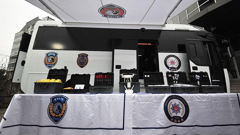 Kent genelinde yaşanabilecek afetler ya da suç mahallerinde bulgu ve kimlik tespiti çalışmalarının hızlanmasında büyük rol oynayacak aracın içerisinde jeneratör, inceleme cihazları, 2 adet dron ve parmak izi bulgularını belirleyen cihaz bulunuyor. Teslim töreninde yapılan tatbikatta cinayet olayını inceleyen ekipler, dron ile delil araması yaptı. Olay yerine yaklaşık 10 metre uzaklıkta, cinayette kullanıldığı düşünülen tabancayı bulan ekipler parmak izi belirlemesi için çalışma başlattı. Emniyet yetkilileri dron destekli delil araması sayesinde, en küçük detayların bile soruşturmaya dahil edilebileceğini ve şüphelilerin kimliğinin kısa sürede belirlenebileceğini belirtti.