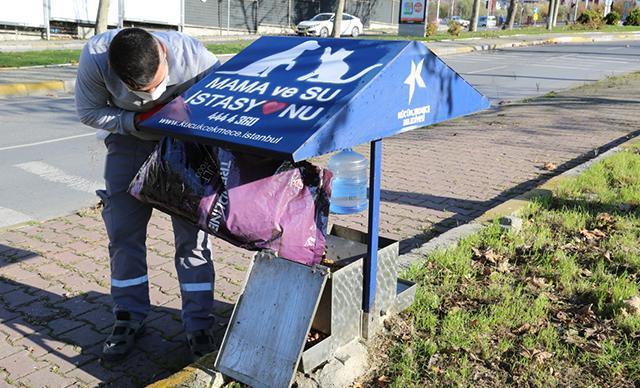 Küçükçekmece Belediyesi, koronavirüs tedbirleri kapsamında hafta sonu uygulanan sokağa çıkma kısıtlamasında, yiyecek bulmakta zorlanan sokak hayvanları için beslenme odakları başta olmak üzere ilçenin pek çok yerinde mama dağıtımı gerçekleştiriyor.