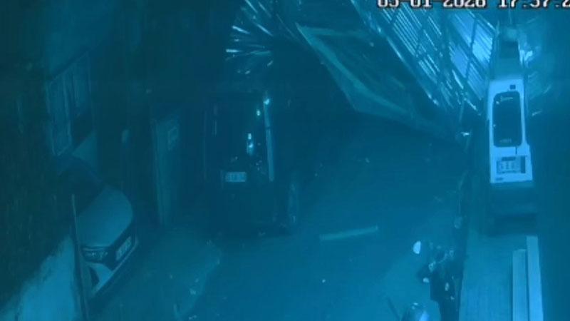 Öte yandan çatının düştüğü anlar bir binanın güvenlik kamerasına yansıdı. Görüntülerde, çatının düşme anı ve olaydan saniyeler önce 2 kişinin sokakta yürüdüğü anlar yer alıyor.