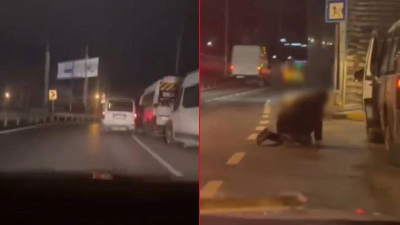 Kazanın ardından araçtan inen sürücü etrafa bağırdığı sırada dengesini kaybederek yere yığıldı. Yaşananlar başka bir sürücü tarafından cep telefonuyla kaydedildi.