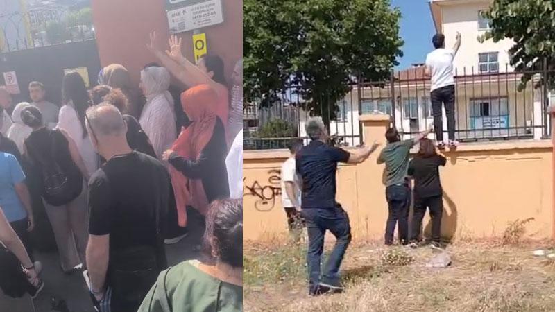 Küçükçekmece'de kızı sınava geç kalınca duvara çıkıp görevliye seslenen babaya veliler tepki gösterdi