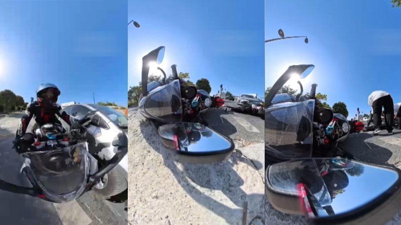 Küçükçekmece'de seyir halindeki motosiklete çarpan otomobil sürücüsü olay yerinden kaçtı. Yaralanan motosikletli hastaneye kaldırılırken kaza anı kask kamerasına saniye saniye yansıdı. Görüntüler sayesinde kazaya karışan aracın plakasını tespit eden sürücü, şikayetçi oldu.