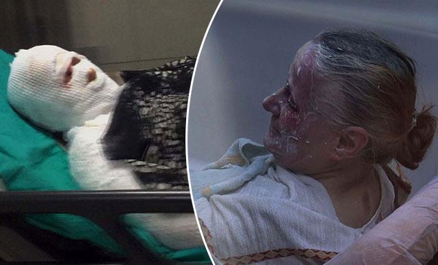 Bursa'da Emine A. (65), tıraş ettiği felçli eşi Ahmet A.'nın (76) ispirto ile kulak kıllarını temizlerken saçlarını tutuşturdu, ardından yattığı yatak alev aldı. Vücudunun yüzde 80'inde ağır yanıklar oluşan Ahmet A. ile kendisine müdahale ederken kolları ve yüzü yanan Emine A., hastaneye kaldırıldı.