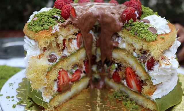 Gastronomi kenti Gaziantep'te künefe ustası Coşkun Yaycı, künefe ve fıstık ezmesiyle birleştirerek 'künefe pastası' adını verdiği pastayı yaptı. Doğum günlerinde en çok tercih edilenler arasında yer alan pastanın yapımında önce künefeler pişiriliyor. Daha sonra üzeri fıstık ezmesi ile örtülen künefeye meyve ve kreması eklenerek 3 kat çıkılıyor. Son olarak ise müşterilerin isteğine göre çikolatalı ve kaymaklı yaparak, bol fıstıkla servis ediliyor. Vatandaşlar ise farklı tat ve görüntüsüyle dikkat çeken künefe pasta özel günlerini kutluyor.