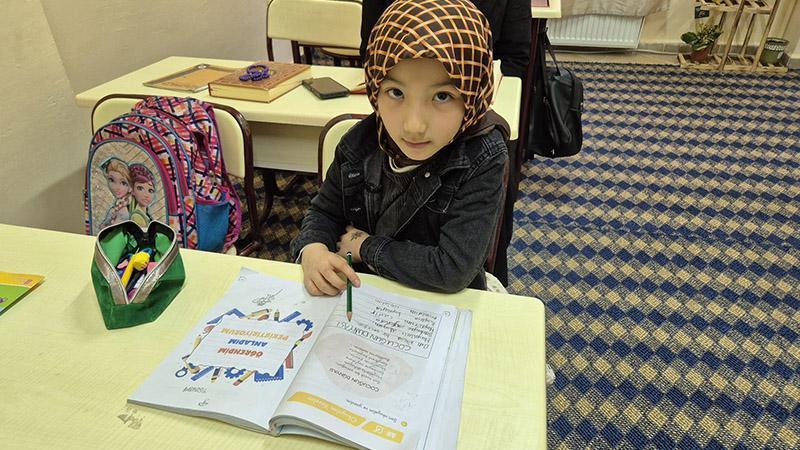 Kur'an kursundaki öğreticinin yardımı ile Türkçe öğrenen Afgan Seher, okula gitmek istiyor