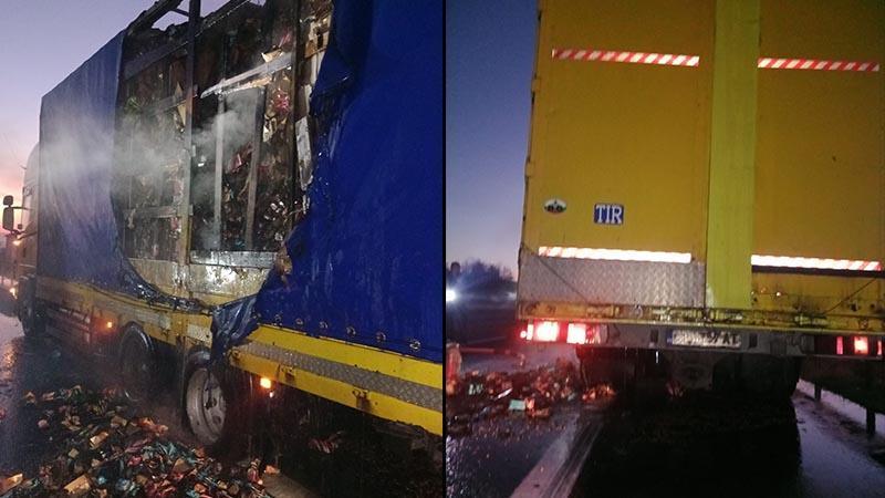 Ankara yönüne giden Bulgaristan uyruklu D.K. idaresindeki CT 5987AT plakalı kuruyemiş yüklü TIR, bugün saat 06.00 sıralarında Anadolu Otoyolunun Yumrukaya mevkisine geldiğinde dorsesinden alev aldı. Durumu fark eden TIR şoförü aracını emniyet şeridine çekerek dorseyi çekiciden ayırdı. İhbar üzerine olay yerine itfaiye ve jandarma ekibi sevk edildi. İtfaiye ekibi yanan dorseye müdahale etti. Yangında dorsede bulunan ürünler yandı.