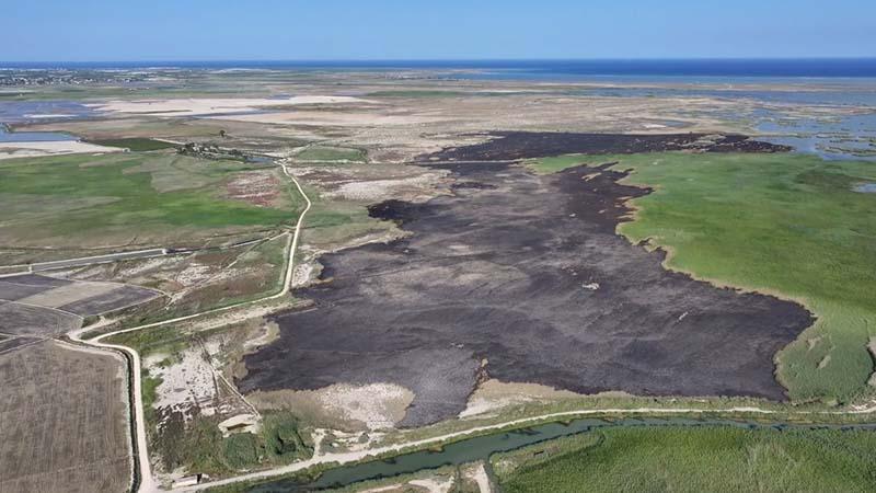 Kuş cenneti Göksu Deltası'nda yangında zarar gören alan havadan görüntülendi