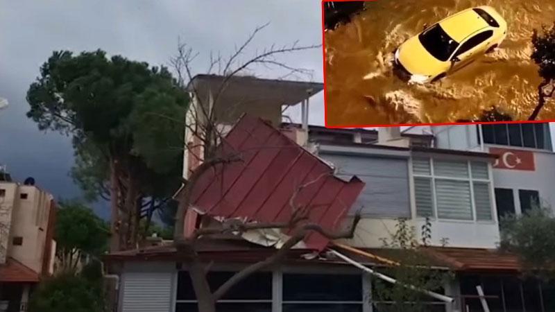 Kuşadası’nda fırtına ve sağanak: Evlerin çatıları uçtu, araçlar yollarda mahsur kaldı