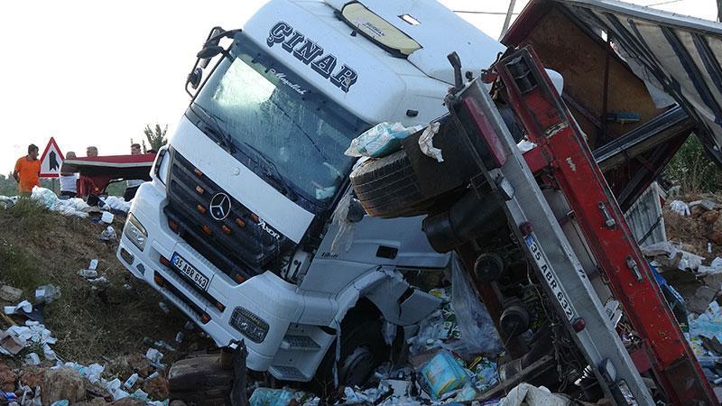 Kazaya karışan TIR’lardan birinin dorsesinde yüklü olan deterjan, temizlik ürünleri ve çeşitli market malzemeleri çevreye savruldu. Yolun büyük bölümü kolilerle kaplanırken, olay yerine gelen ekipler hem trafik güvenliğini sağladı hem de yola saçılan ürünlerin kaldırılması için çalışma başlattı.