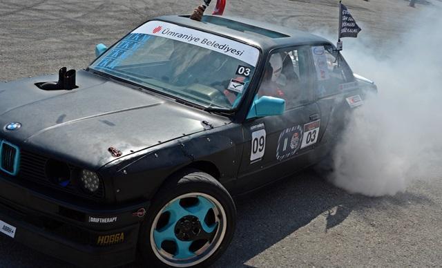 Ümraniye Belediyesi tarafından Hekimbaşı Spor Tesisleri’nde düzenlenen etkinlikte profesyonel drift sürücüleri Ümraniyeli otomobil tutkunlarına adrenalin dolu dakikalar yaşattı. Trafiğe kapalı alanda düzenlenen etkinlikte otomobiller drift atarak lastik yaktı. Drift için özel olarak hazırlanan alanda önce araçlarını sergileyen pilotlar, daha sonra yaptıkları drift şov ile izleyenlere görsel şölen yaşattı.