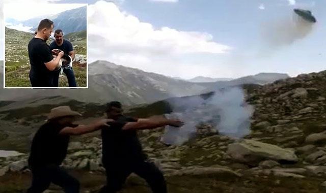 Ardeşen ilçesinde yaylaya çıkan bir grup arkadaş, ateşledikleri torpili tencerenin içerisine koyup, kapağını kapattı. Bir kişinin elinde tuttuğu tencerenin kapağı, torpilin infilak etmesiyle birlikte metrelerce uzağa fırladı. O anları bir kişi ise cep telefonunun kamerasıyla kayda aldı.