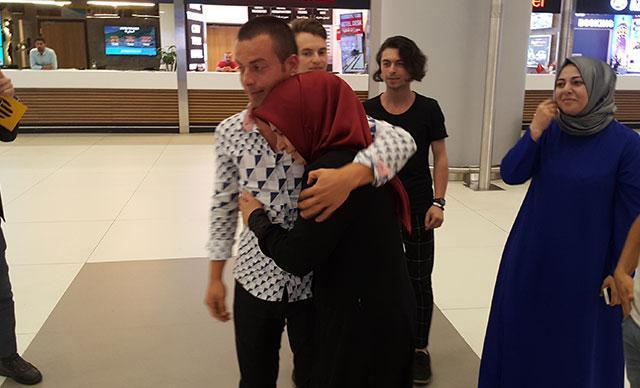 Hava limanında koşarak oğlu Onur Çakır'a sarılan Huriye Çakır, çok mutlu olduğunu söylerken , Onur Çakır ise, "İnternetim kısıtlıydı. Mümkün olduğunca ailemle iletişim kurdum. Başımızdan geçen olayları aileme yansıtmamaya çalıştım" dedi.