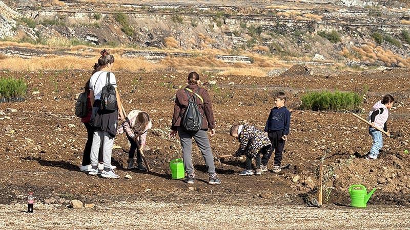 Maden rehabilitasyon projesi kapsamında zeytin fidanları toprakla buluştu