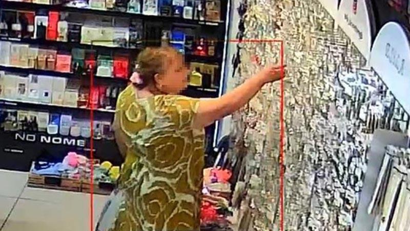 Olay, 6 Haziran’da ilçe merkezinde faaliyet gösteren bir bijuteri dükkanında meydana geldi. İş yerine çocuğu ile birlikte gelen bir kadın, reyonlarda satılan ürünleri çalarak çantasına koydu. Bir süre iş yerinin içinde gezinen kadın 8 bilezik, 5 küpe, göz kalemi ve birçok ürünü çalıp çantasına koyduktan sonra bujiteri dükkanından çıktı. Çalışanların ürünlerin eksik olduğunu fark etmesi üzerine güvenlik kamera görüntüleri incelendi. Görüntülerde, şüphelinin reyonlardan çaldığı malzemeleri çantasına koyduğu anlar kameralara yansıdı.
