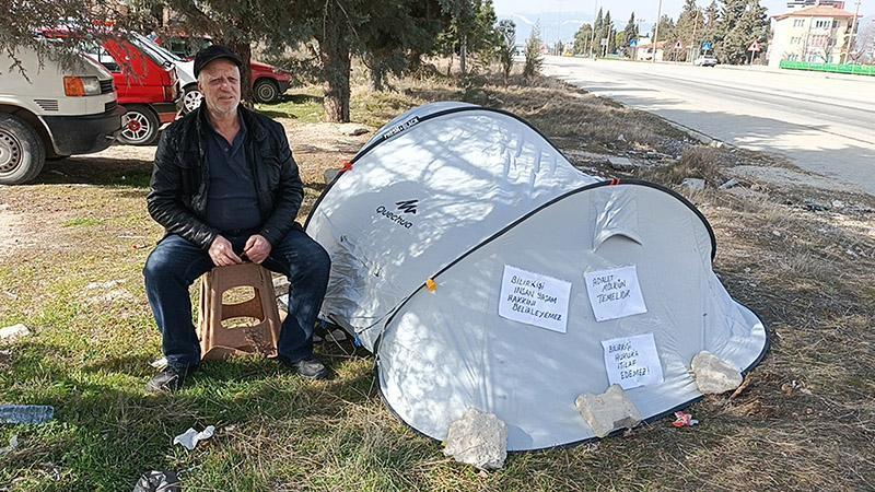 Burdur'da emekli Orhan Yıldırım (63), ev sahibinin 2 yıl önce açtığı dava sonucu belirlenen kira bedelini protesto için adliye karşısına çadır kurdu. 5 bin lira olan kirasını ev sahibinin 15 bin liraya yükseltmek istediğini, mahkemenin ise 8 bin lirada karar kıldığını söyleyen Yıldırım, "Şu anda gerekçeli kararı bekliyorum. Olmazsa yarından itibaren açlık grevine başlayacağım" dedi.
