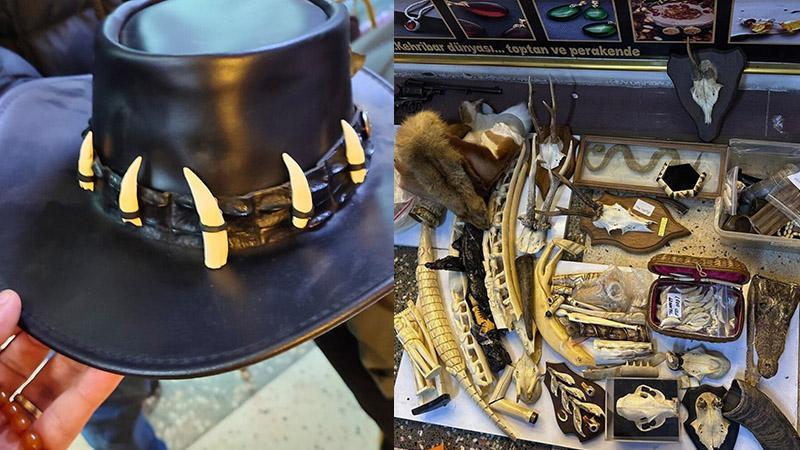 Doğa Koruma ve Milli Parklar Genel Müdürlüğü’ne gelen ihbar üzerine başlatılan soruşturma kapsamında polis ekipleri iş yerine operasyon düzenledi. İş yerinde yapılan aramada; 106 adet fil dişi tespih, 101 adet fil dişi tespih parçası, 180 adet kurt dişi, 10 adet halka şeklinde içi boş fil dişi, 8 adet yumurta şeklinde fil dişi, 13 adet Caretta caretta kabuğundan yapılmış tespih, 8 adet aslan tırnağı, 1 kilo 250 gram fil dişi parçası, 52 adet dekoratif fil dişi obje, 1 adet geyik boynuzundan yapılmış tespih ve yüzük, 1 adet timsah derisi ve timsah dişlerinden oluşan şapka, 1 adet balina dişinden yapılmış tespih, 8 adet karaca trofesi, 1 adet ceylan postu, 1 adet gelincik postu, 1 adet timsah kafası, 1 adet vaşak kafası, 1 adet engerek yılanı tahniti, 3 adet kunduz trofesi ve çene takımı, 10 adet timsah pençesi, 10 adet timsah dişi, 2 adet bufalo boynuzu, 33 adet bufalo boynuzundan yapılmış tespih ele geçirildi. Yapılan inceleme sonrası iş yeri sahibine ilgili kanunlar gereği idari para cezası uygulanırken, yerli türlere ait ürünler için ayrıca tazminat cezası kesileceği öğrenildi. Şüpheli hakkında adli işlem başlatıldı.