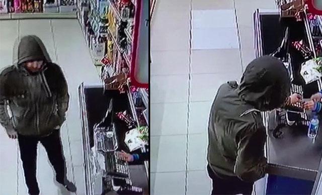 Soygun anı marketin güvenlik kameralarına saniye saniye yansıdı. Görüntülerde, market önünde bir süre bekleyen soyguncu, içeri girerek bir şeyler alır gibi yapıp kasaya geliyor. Soyguncu kamera açısının göremeyeceği şekilde montuna gizlediği silahını kasiyer kadına gösteriyor. Ardından kadından kasadaki paraları vermesini istiyor. Bunun üzerine kasiyer kadın, paraları soyguncuya veriyor. Paraları alan soyguncu hızla marketten çıkarak uzaklaşıyor.