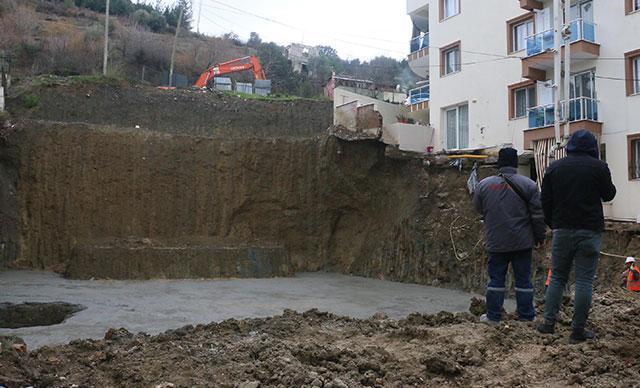 İnşaatın yapımını üstlenen yüklenici firma, apartman inşaatı için kazılan temeldeki çalışmalarına 8 Şubat'ta tekrar başladı. Yüklenici firmadan isminin açıklanmasını istemeyen bir yetkili, kazılan temelin üzerine daha önce beton döküldüğünü hatırlatıp, "Ancak yalıtımı yapılmamıştı. Şimdi yalıtım yapılıp, bir kat daha beton döküldü. Dökülen betonunun kurumasının ardından inşaat ile temelinde kayma olan iki bina arasına çelikle güçlendirilmiş, istinat duvarı örülecek. Ayrıca, dolgu malzemesi olarak aralara beton dökülerek kayan binaların temeli güçlendirilecek. Böylelikle tehlike ortadan kaldırılıp, kayan iki bina kullanılabilir hale getirilecek" diye konuştu.