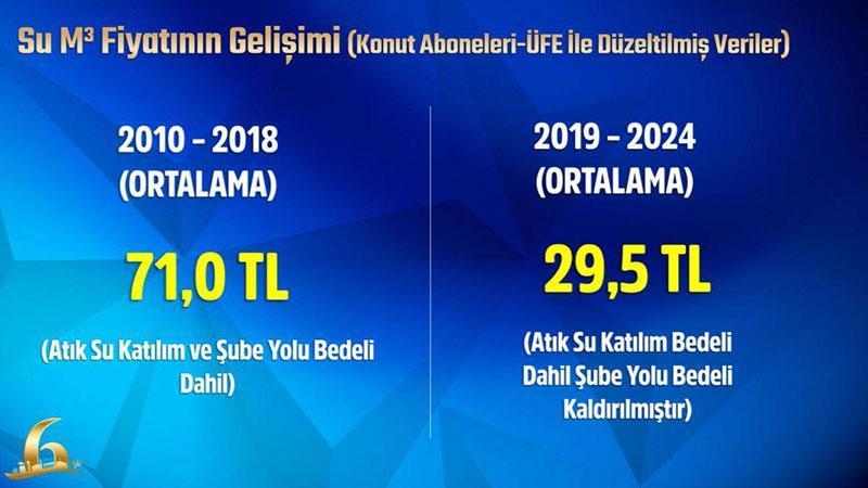 ABB Başkanı Mansur Yavaş, sosyal medya hesabından paylaşım yaparak, önceki yönetim dönemiyle mevcut yönetimin arasındaki su fiyatlarına dair açıklamalarda bulundu. Yavaş, 2010- 2018 yıllarını kapsayan önceki yönetim döneminde konut aboneleri için suyun metreküp fiyatının ortalama 71 TL, tüm aboneler için ise 82,7 TL olduğunu belirtti. Mevcut yönetim döneminde, yani 2019- 2024 yılları arasında ise bu fiyatların güncel verilerle konut abonelerinde ortalama 29,5 TL, tüm abonelerde ise 32,4 TL seviyesinde olduğunu vurguladı. Yavaş açıklamasında, “Daha da önemlisi belediyemizden sosyal destek alan 50 bin abonemize suyun tonunu 1 liradan veriyoruz. Bu arada ASKİ’nin giderlerinin önemli bir kısmı enerji gideridir. Burada indirime gidilirse; su daha da ucuza verilir. Ayrıca su fiyatı önceki dönemin yarısından daha az” ifadelerini kullandı.